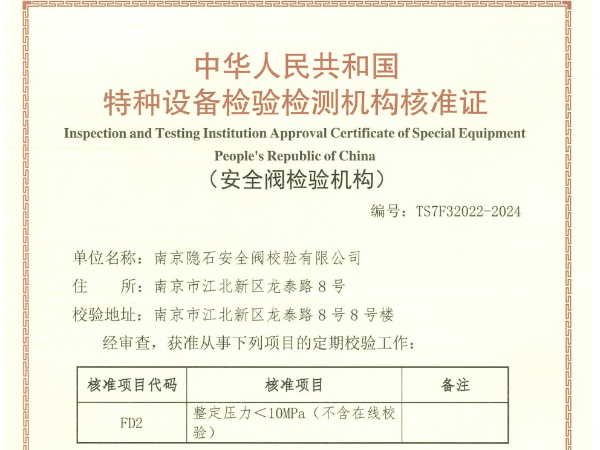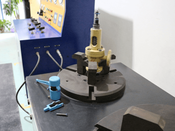 安全閥校驗(yàn)項(xiàng)目介紹:安全閥校驗(yàn)應(yīng)該連續(xù)進(jìn)行整定壓力校驗(yàn)和密封性能試驗(yàn),一般不少于2 次。對(duì)于盛裝易燃、易爆或毒性程度為中度以上的介質(zhì)等不允許有微量泄漏的設(shè)備,其安全閥密封性能試驗(yàn)不可少于3次。環(huán)境要求:彈簧直接載荷式安全閥的定期校驗(yàn)原則上應(yīng)該在校室進(jìn)行,進(jìn)行拆卸校驗(yàn)有困難時(shí),可在每兩個(gè)校驗(yàn)周期內(nèi)進(jìn)行一次校驗(yàn)室校驗(yàn)和一次在線校驗(yàn)。但安裝在介質(zhì)為有毒、有害、易燃、易爆的壓力容器上的安全閥,不允許進(jìn)行在線校驗(yàn)。在線校驗(yàn)必須在保證人員和生產(chǎn)安全的前提下進(jìn)行;杠桿...